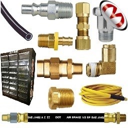 Boyaux à air, accouplements en laiton (brass fitting) et en acier noir