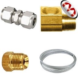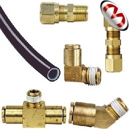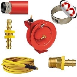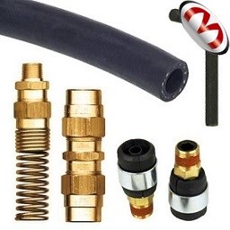 Boyaux à air, accouplements en laiton (brass fitting) et en acier noir